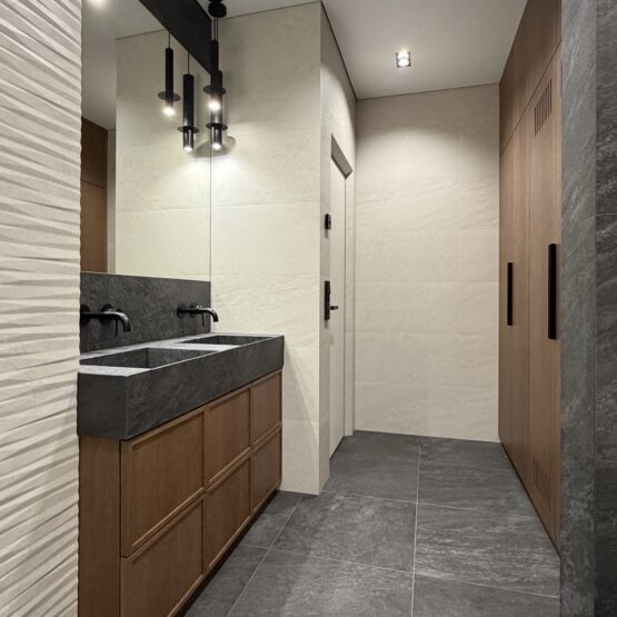 Акриловая столешница – прочная, надежная поверхность, устойчивая к воздействию влаги. Лаконичная наружная фурнитура, ящики с плавным закрыванием, бесшумные петли и направляющие. Премиальные материалы, которые мы используем в производстве авторской мебели, делают изделия максимально комфортными в использовании и гарантируют длительный срок службы.