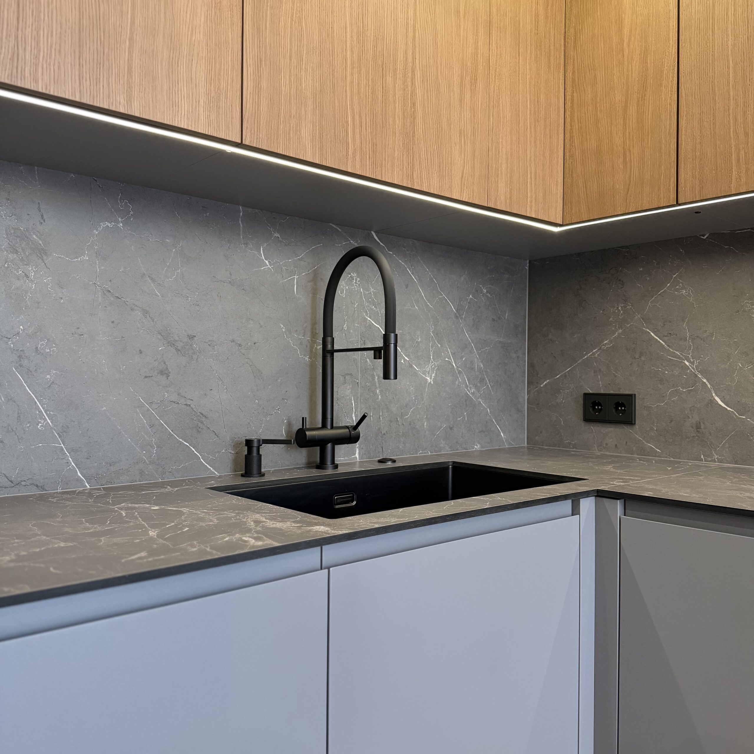 Снаружи — идеальная чистота линий, внутри — продуманная функциональность. Кухня, в которой всё выглядит сдержанно и работает безупречно.