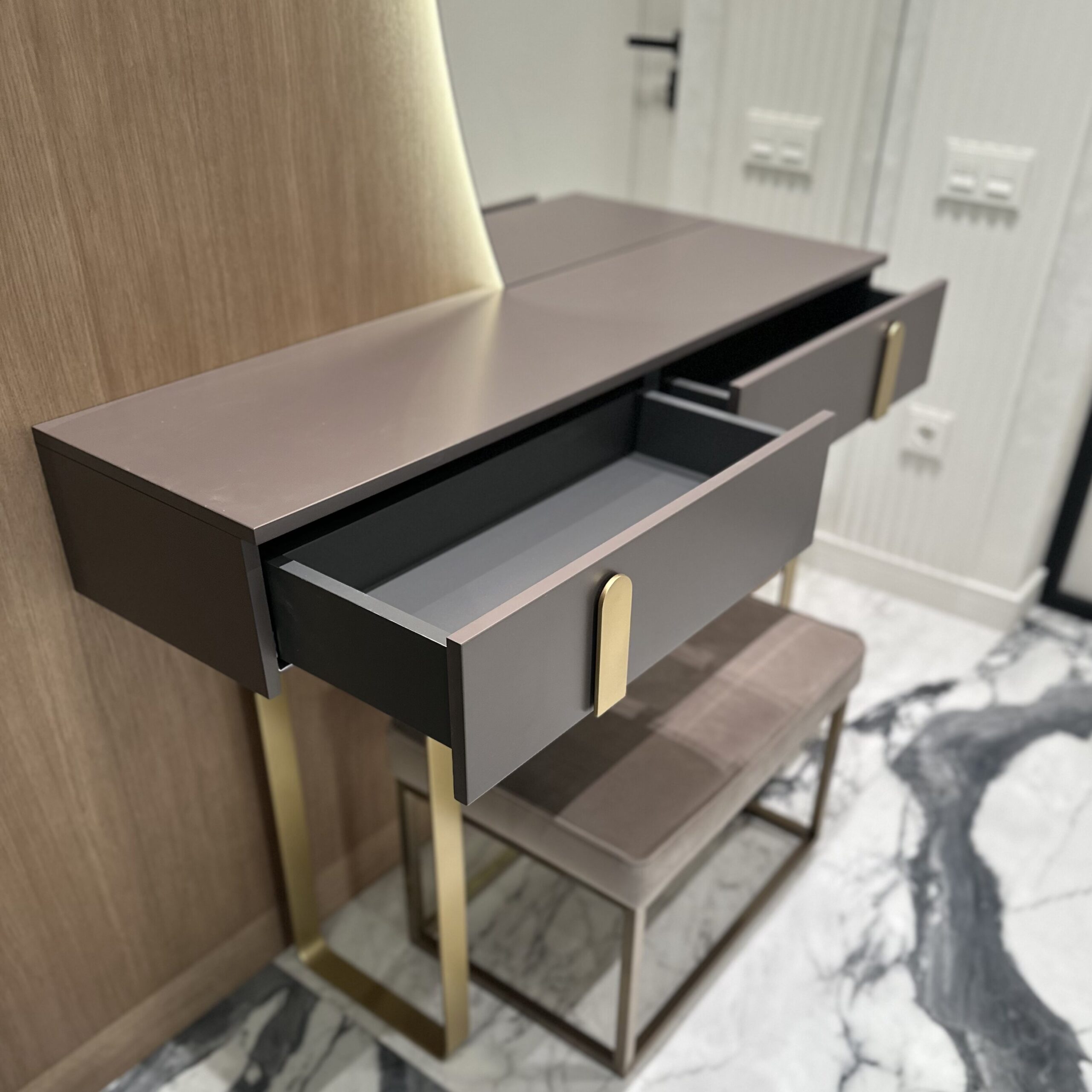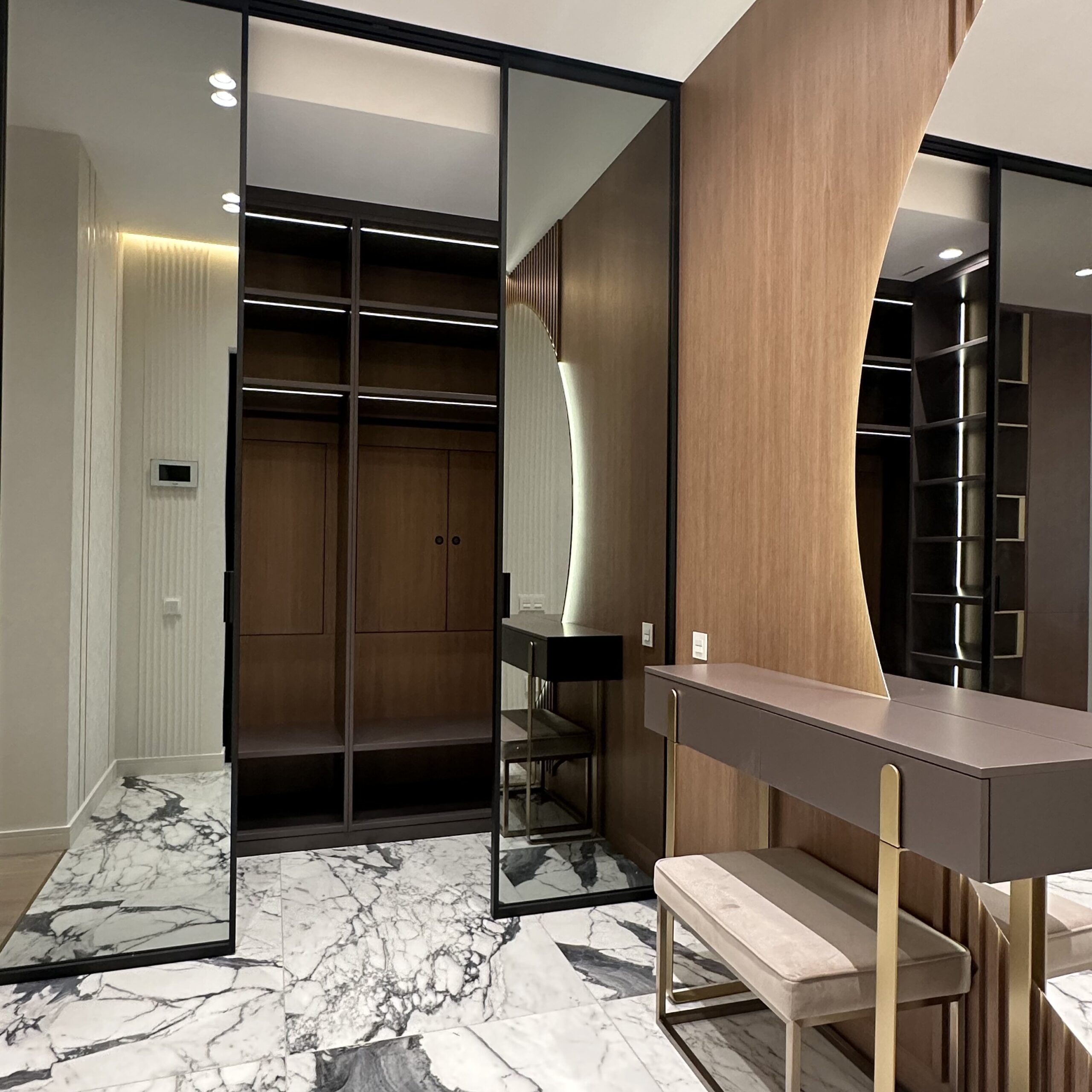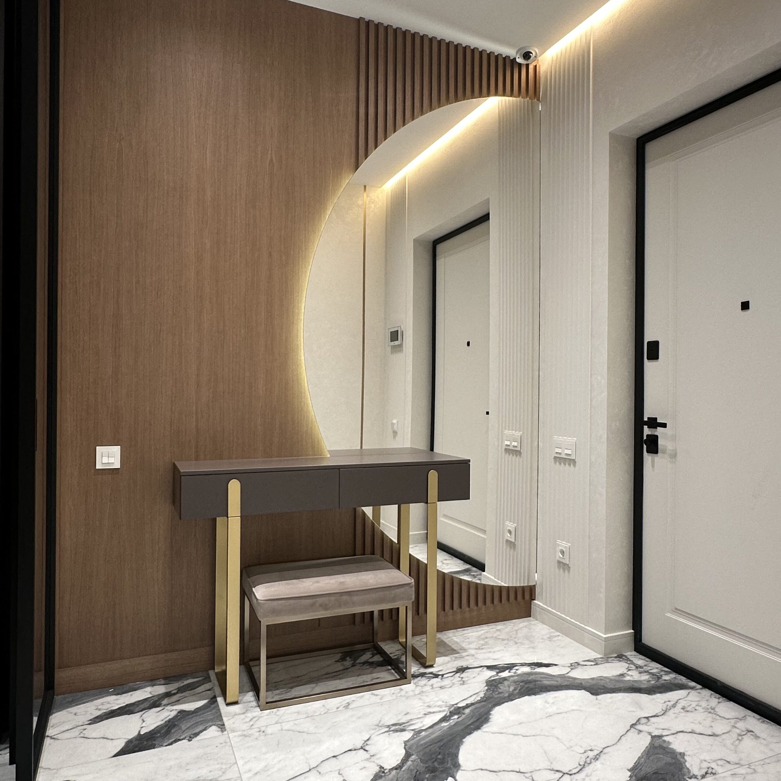 Изысканная коллекция мебели от ArtPractica Furniture Atelier объединяет в себе роскошь натуральных материалов и современный дизайн. Центральное место занимает великолепная дубовая панель со шпоном, дополненная элегантной консолью из МДФ в эмалевом покрытии и зеркалом с мягкой подсветкой.