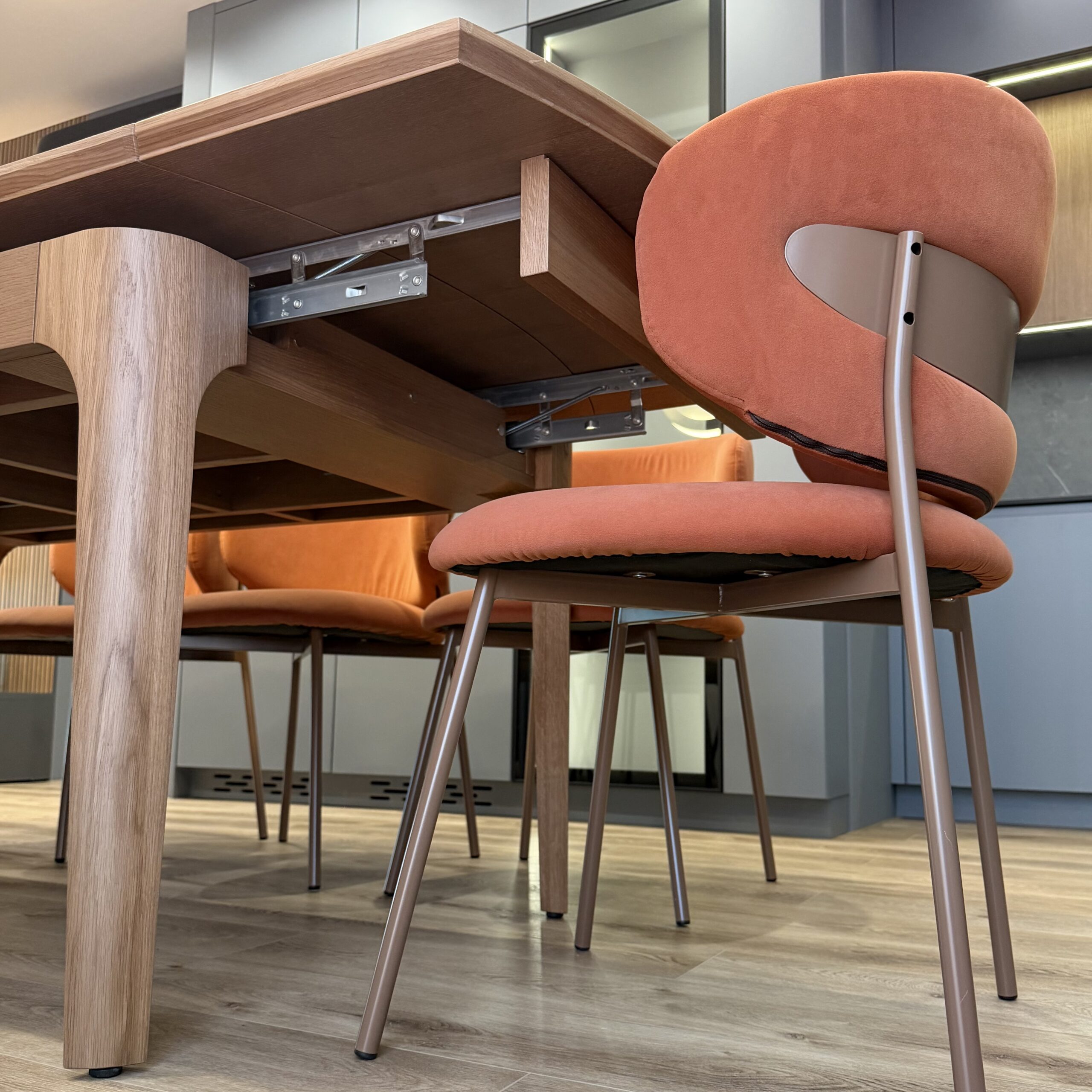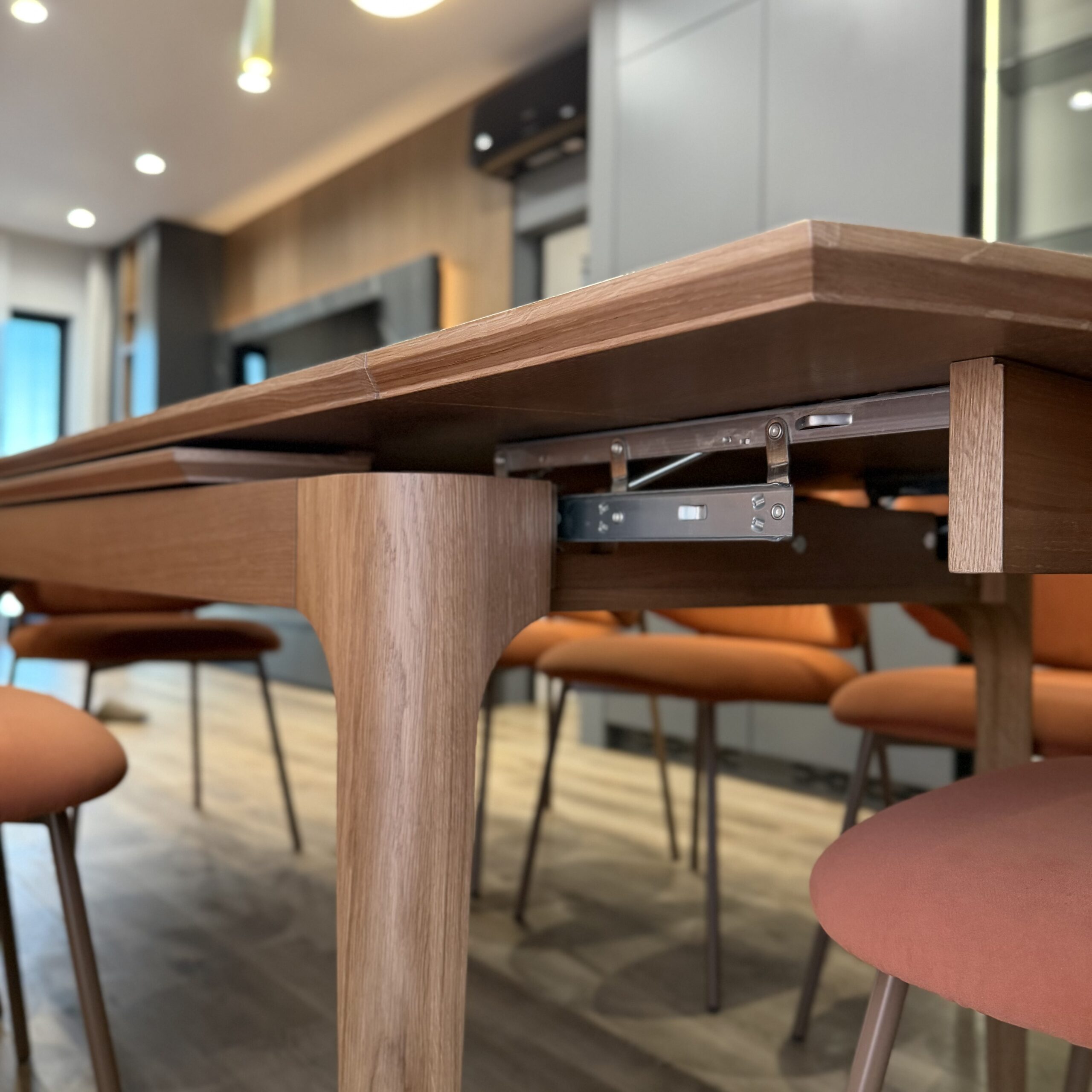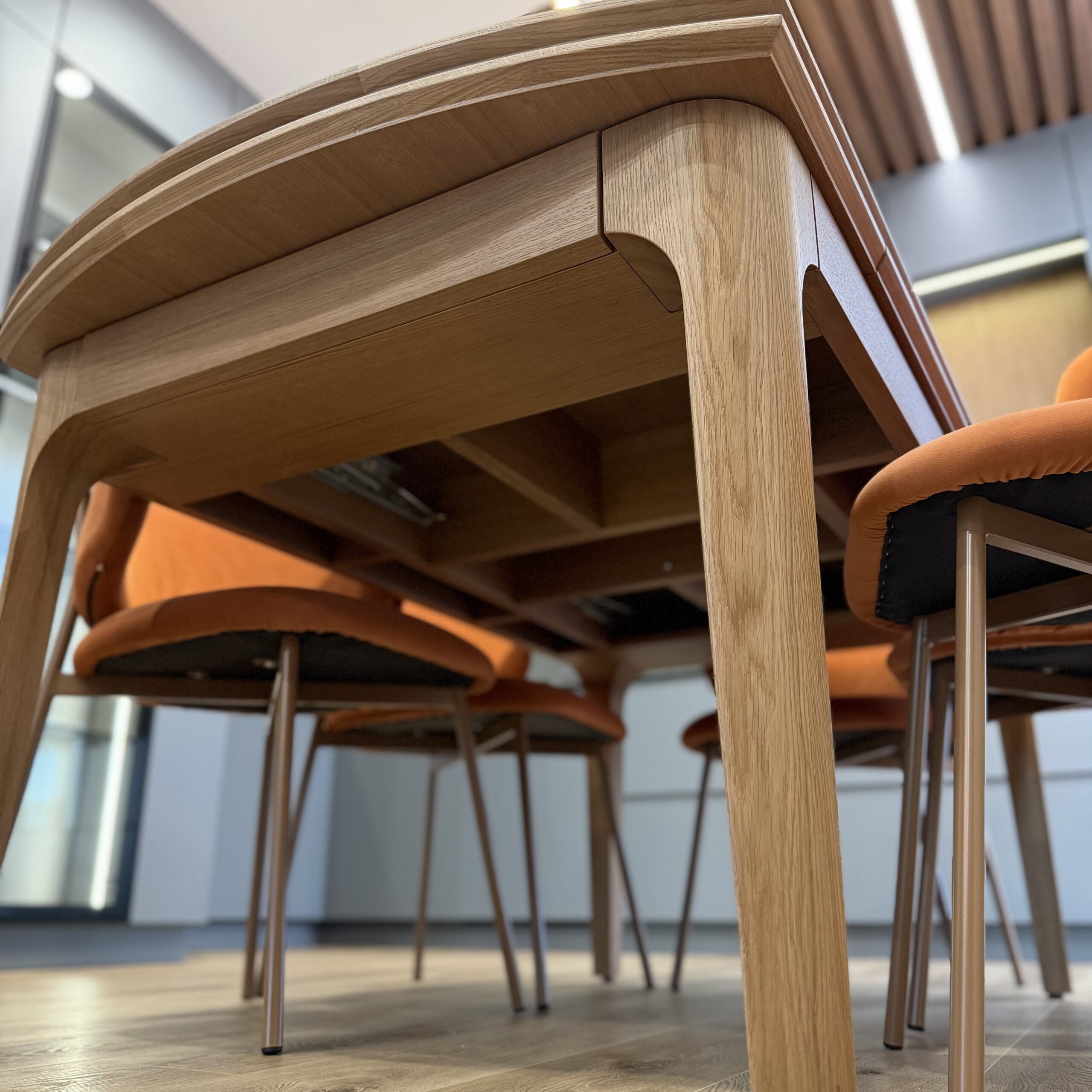 Выдвижные боковые элементы аккуратно увеличивают рабочее пространство, при этом в собранном виде стол остаётся компактным и визуально чистым. Лаконичное решение, в котором комфорт ощущается в каждом движении.