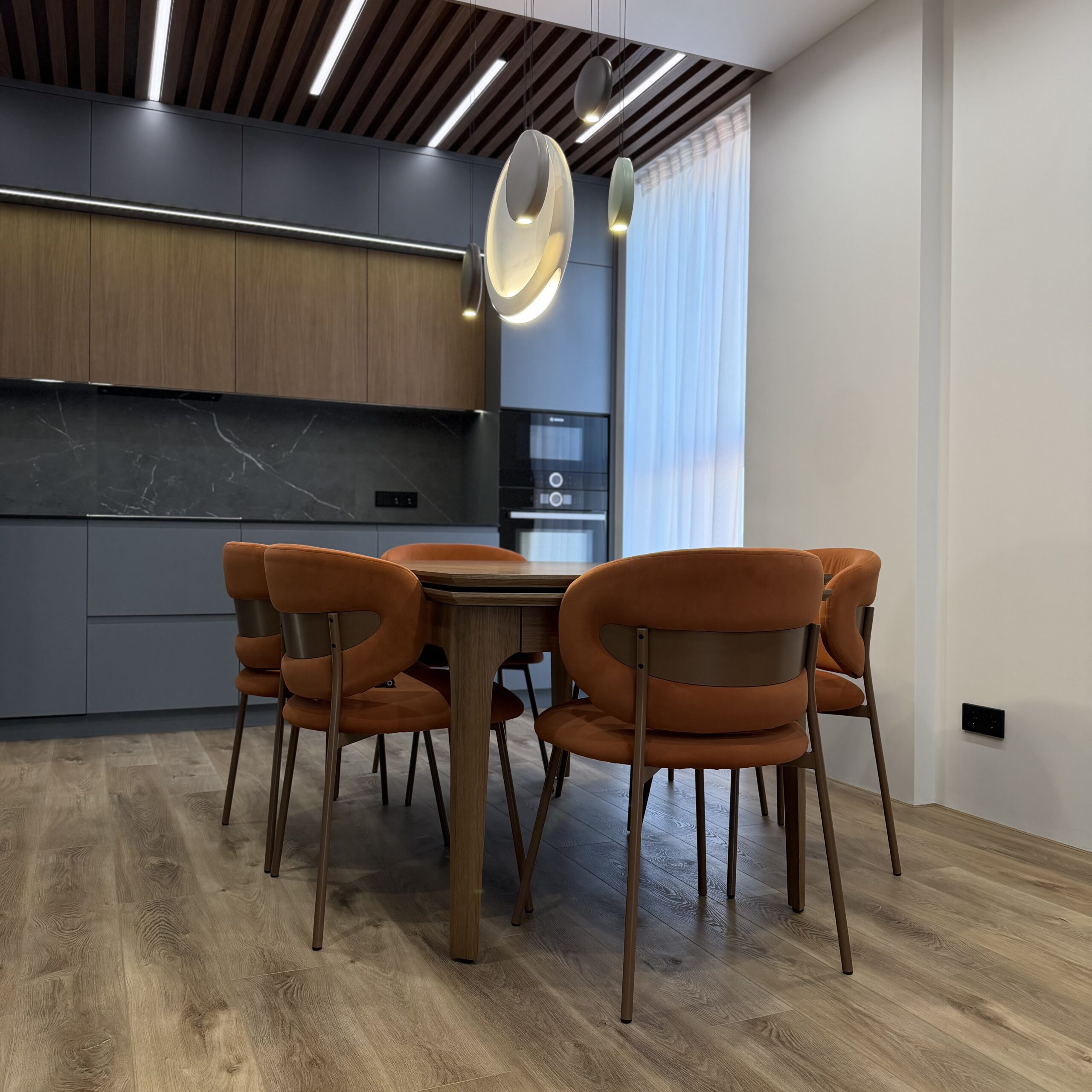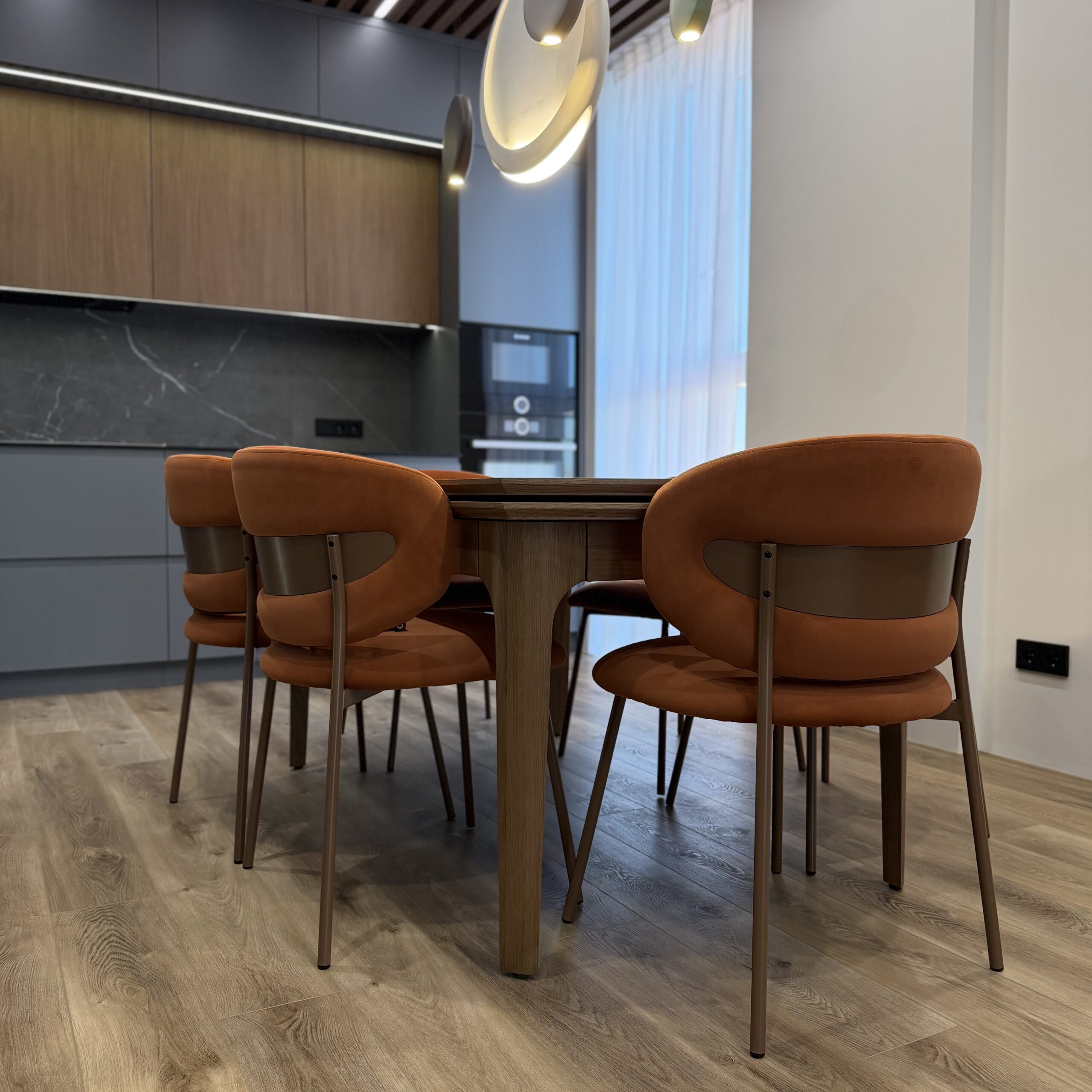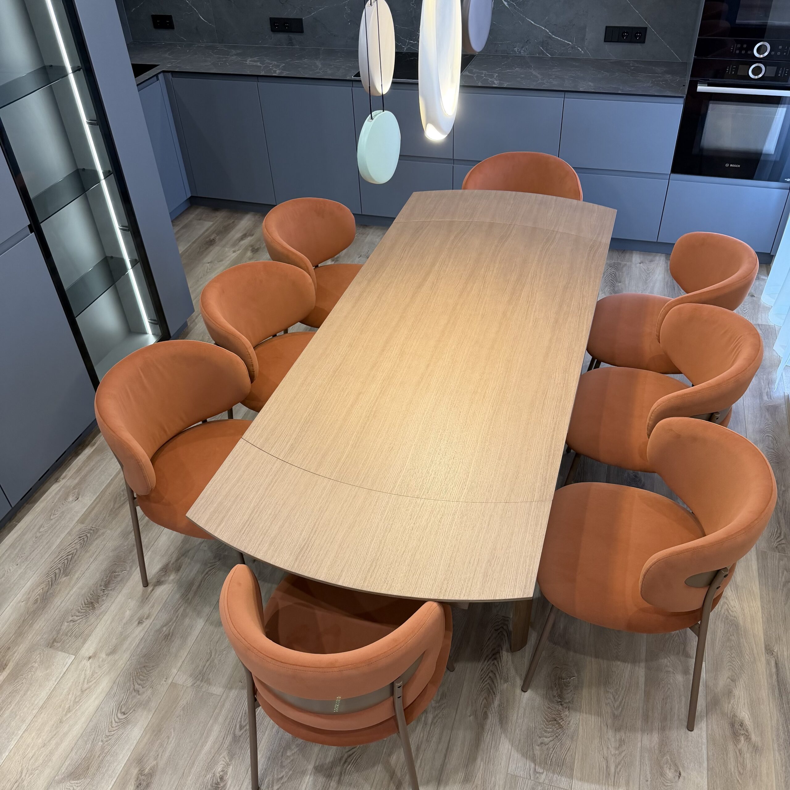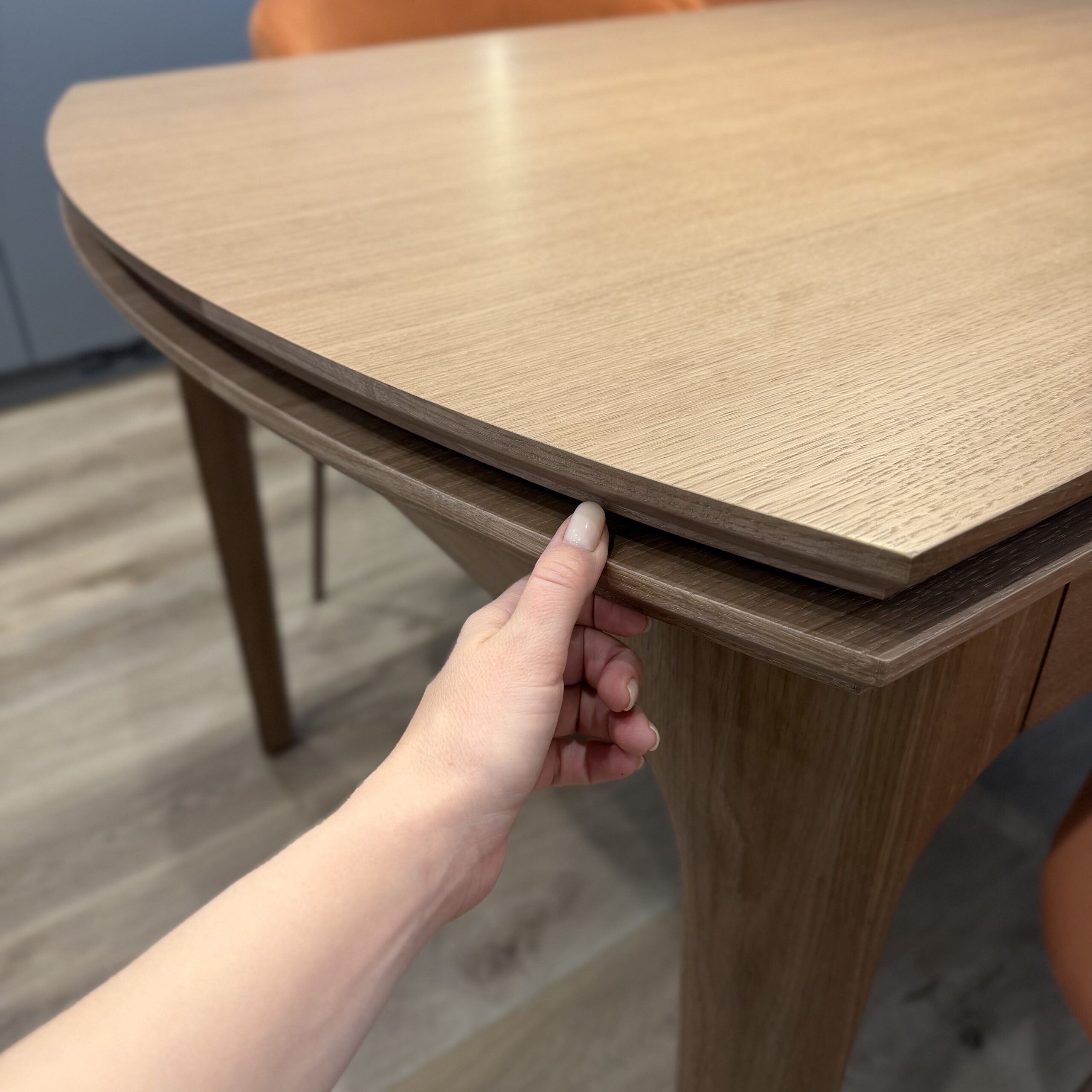 Выдвижные боковые элементы аккуратно увеличивают рабочее пространство, при этом в собранном виде стол остаётся компактным и визуально чистым. Лаконичное решение, в котором комфорт ощущается в каждом движении.